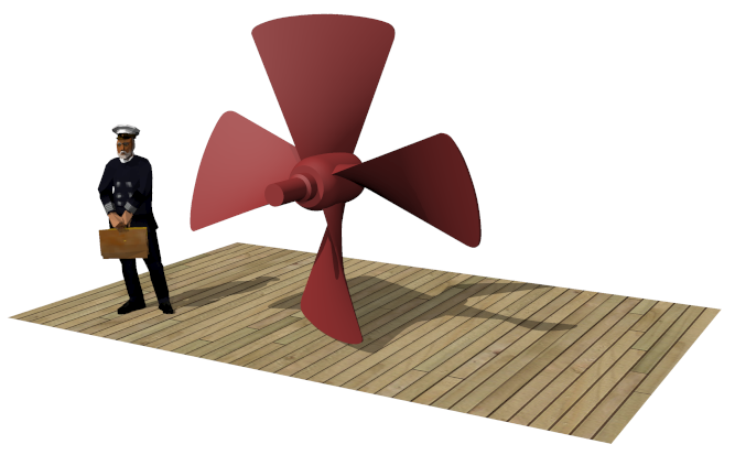 Excellent work. An example of a rendering that provides more information than the original article. Blade width reveals slow RPMs. Blade twist evokes sails, perhaps the best available design metaphor of that time. But why iron and not brass? Perhaps the size of Monitor’s screw precluded brass casting or perhaps early nautical propulsion designers missed what their forebears would learn: a busted prop beats a broken drive shaft.