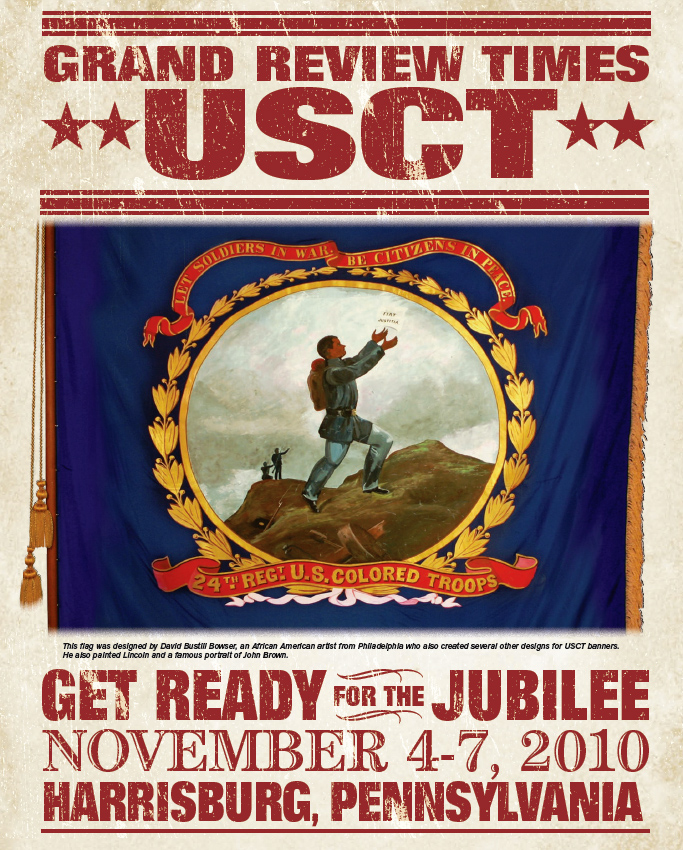 Commenter David Cassatt points out that this coming weekend in Harrisburg, Pennsylvania is the Grand Review, a celebration of the service of USCT during the Civil War. The program of scheduled activities is lengthy (PDF), with something for everyone. The Grand Review commemorates the November 1865 event of the same name organized by the women of Harrisburg to honor the United States Colored Troops from 25 states who were not permitted to participate in the Grand Review of the Armies, a military procession and celebration held May 23-24, 1865 in Washington, D.C., following the end of the Civil War.