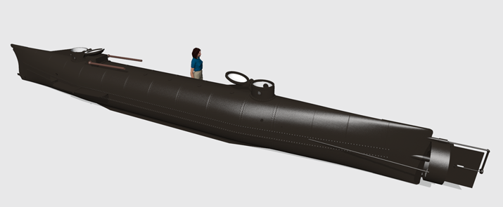 Over the weekend I picked up a copy of Tom Chaffin’s The H. L. Hunley: The Secret Hope of the Confederacy, which looks to be a well-crafted read. My purchase was influenced in no small part by its inclusion of plans of the boat by a respected e-acquaintance of mine, Michael Crisafulli, who probably knows more about the design and construction of the craft than anyone not directly connected with the current, ongoing archaeology project. I used Michael’s plans of the boat for my own digital model, shown here. Full-size images here.
