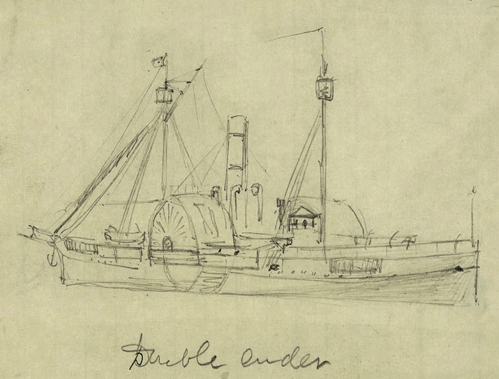 Image: Sketch of a “double-ender” Union gunboat by A. R. Waud. Library of Congress.