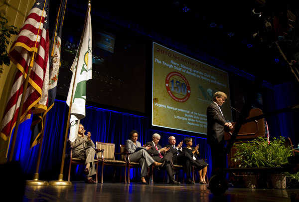 Image: Virginia Gov. Bob McDonnell addressing an audience at Norfolk State University on September 24, 2010, during which he announced that the state’s former observance of Confederate History Month would be replaced by Civil War in Virginia Month. Photo by Adrin Snider, Daily Press.