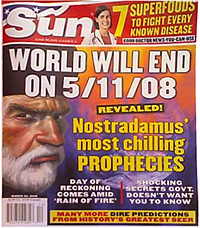 This is, like most citing of mysterious prophecy, a case of what James Randi calls “retroactive clairvoyance,” connecting vaguely-worded prophecies to events that have already happened, or are plainly inevitable to all. For any Daily News readers who might not make the connection between Nostradamus’ writing and then-current events, of course, the editors helpfully insert the date and location he was (obviously) referring to.