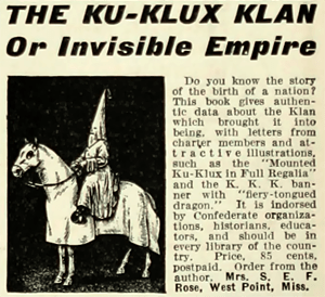 [8] Laura Martin (Mrs. S. E. F.) Rose, The Ku Klux Klan: or Invisible Empire (New Orleans: L. Graham Co., 1914), 78-79.