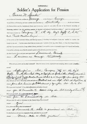 Image: The 1916 pension application for Isaac N. Sparks, formerly of Co. K, 5th Kentucky Mounted Infantry Regiment.