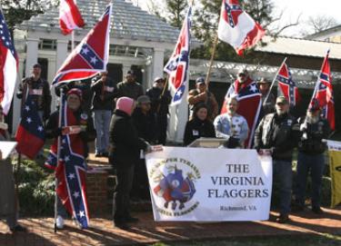 Image: Virginia Flaggers rally in January 2012 at Hopkins Green in Lexington to call for the defeat of Mayor Mimi Elrod. Image via thenews-gazette.com.