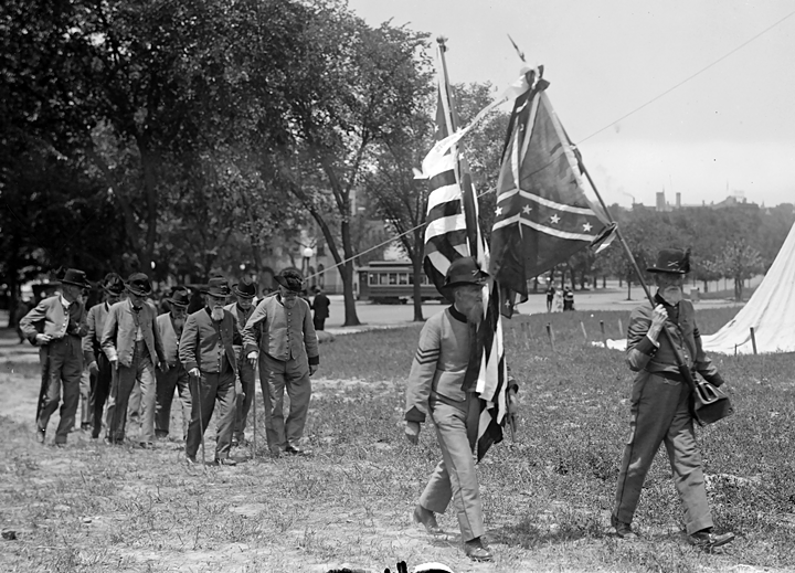Real Confederates were a lot more willing to aver their loyalty to the Union in the years after the war than some make-believe Confederates are today. I wonder if the Confederate Tarheels in the photo above, in 1917, marched down Pennsylvania Avenue chanting, “Kill Yankees! All of Them!”