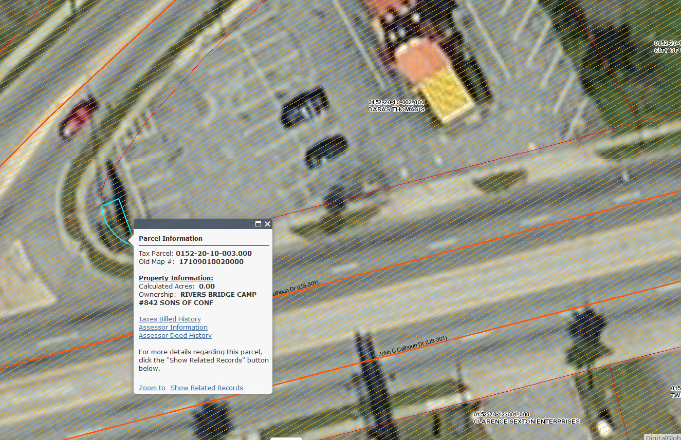 We’ll see what happens, but a quick skim of Orangeburg County tax records suggests that Braxton is correct — the Rivers Bridge Camp has been paying taxes on that tiny plot of land for years, between $10 and $11 annually. While I don’t know what Daras’ deed says, it’s going to be hard for him to argue that he owns property that someone else has been paying the taxes on for at least a decade.