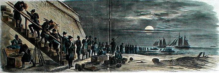 Ed. Note: The post has been extensively rewritten in response to a reader’s inquiry in the comments, below. Thanks to him for providing the impetus for this. Image: Evacuation of Fort Moultrie by W. R. Waud, Frank Leslie’s Illustrated Newspaper.