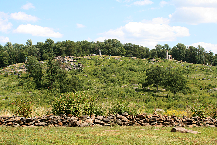 West slope of the Little Round Top, Gettysburg, as seen from the plain along Plum Run. This is the view that presented itself to the Fourth and Fifth Texas Regiments late on the afternoon of July 2, 1863. Photo by jwolf312, used under Creative Commons License.
