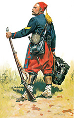 On that August afternoon, Daffan and his comrades witnessed what later came to be known as “the very vortex of Hell.” At the center of that conflagration stood the famous Fifth New York Volunteers, Duryée’s Zouaves. They took the full brunt of the attack by Daffan’s counterparts in the Fifth Texas, and Hampton’s Legion of South Carolinians, and the Eighteenth Georgia. The Zouaves held on as long as they could, and were effectively wiped out as a fighting unit. Of 525 “redlegs” who marched into the fight that day, 332 were killed or wounded, a casualty rate of 63%.