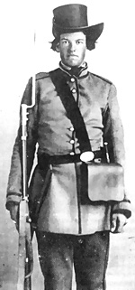 Giles’ account of Second Manassas shares much with that of his postwar friend and fellow 4th Texas veteran, Lawrence Daffan of Company G. It’s a harrowing description, and Giles (Company B) was much shaken by the carnage he saw around him within the regiment. That’s for a later time, though; for now, I want to follow-up Daffan’s dramatic description of Captain James Reilly’s Battery D of the 1st North Carolina Artillery with Giles’ description of the same event. As always, Giles (right, in a studio portrait taken in Austin at the time of his enlistment in 1861) has a keen ear for vivid characters and humorous spectacle:*