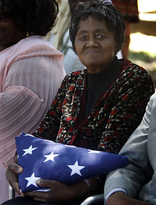 Mary Johnson, granddaughter of Pvt. Samuel Brown, holds an American flag presented to her at the event. Paul Chinn/SF Chronicle