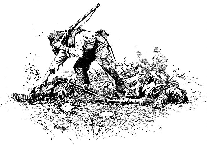 Hays’ Louisiana Brigade had been in on our left, and had been driven out. Some of their men were with us at this fence. One of them was a better soldier than I was. I was lying on the ground shooting through the fence about the second rail; he stood up and shot right over the fence. He was shot through his left hand, and through the heart as he fell on me, dead. I pushed him off and saw that “Seventh Louisiana” was on his cap.